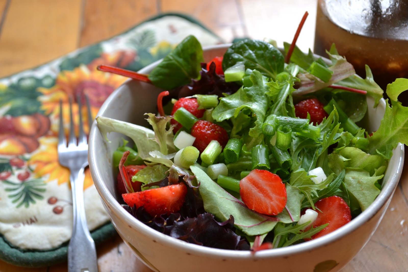 L'assiette vegan Salade de verdure et fraise et sa vinaigrette balsamique